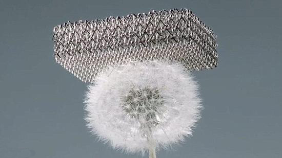 這種金屬材料被稱為“迷你網(wǎng)格”(microlattice),非常輕盈,甚至能放在一朵蒲公英之上。它還具有很高的強度,波音公司宣稱,如果把雞蛋用這種材料包裹起來,即使從25層樓的高度掉下來也不會摔壞。