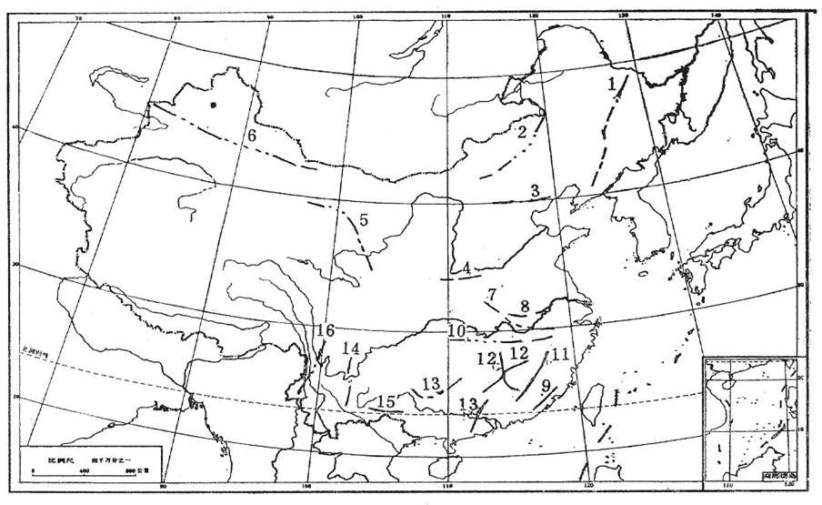 1—吉黑成礦帶;2—內(nèi)蒙—大興安嶺成礦帶;3——燕山成礦帶;4—東秦嶺成礦帶;5—祁連—西秦嶺成礦帶;6—天山—北山成礦帶;7—武當(dāng)—淮陽隆起成礦帶;8—下?lián)P子臺褶成礦帶;9—東南沿海成礦帶;10—江南臺隆成帶;11—武夷山加里東隆起成礦帶;12—湘贛粵加里東隆起成礦帶;13—湘桂粵海西、印支坳陷成礦帶;14-康滇地軸成礦帶;15—滇桂臺褶成礦帶;16—三江錫鎢成礦帶。