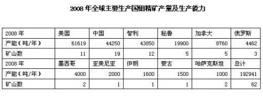 08年全球主要鉬精礦生產(chǎn)國礦山統(tǒng)計
