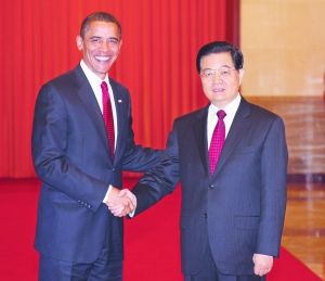 中國(guó)國(guó)家主席胡錦濤17日在人民大會(huì)堂同來(lái)華進(jìn)行國(guó)事訪問(wèn)的美國(guó)總統(tǒng)奧巴馬舉行會(huì)談。雙方一致同意,共同努力建設(shè)21世紀(jì)積極合作全面的中美關(guān)系,并將采取切實(shí)行動(dòng)穩(wěn)步建立應(yīng)對(duì)共同挑戰(zhàn)的伙伴關(guān)系。雙方將加強(qiáng)宏觀經(jīng)濟(jì)金融政策協(xié)調(diào)。 胡錦濤就進(jìn)一步推進(jìn)中美關(guān)系發(fā)展,提出五點(diǎn)重要主張:一、持之以恒增進(jìn)中美戰(zhàn)略互信。二、保持密切高層交往和其他各級(jí)別對(duì)話磋商。三、加強(qiáng)宏觀經(jīng)濟(jì)金融政策協(xié)調(diào)。當(dāng)前形勢(shì)下,兩國(guó)應(yīng)該以更加堅(jiān)決的態(tài)度反對(duì)和抵制各種形式的保護(hù)主義,堅(jiān)持通過(guò)平等協(xié)商妥善處理兩國(guó)經(jīng)貿(mào)摩擦問(wèn)題。中方希望美方盡快放寬對(duì)華高技術(shù)產(chǎn)品出口限制,承認(rèn)中國(guó)市場(chǎng)經(jīng)濟(jì)地位,并為雙方企業(yè)擴(kuò)大貿(mào)易和投資合作提供便利,以更加積極的態(tài)度推動(dòng)雙邊經(jīng)貿(mào)關(guān)系健康穩(wěn)定發(fā)展。四、繼續(xù)推進(jìn)各領(lǐng)域交流合作。五、共同應(yīng)對(duì)各種地區(qū)和全球性挑戰(zhàn)。 奧巴馬完全同意胡錦濤關(guān)于進(jìn)一步加強(qiáng)兩國(guó)關(guān)系的五點(diǎn)意見(jiàn)。他表示,美國(guó)不尋求遏制中國(guó),歡迎一個(gè)強(qiáng)大、繁榮、成功和在國(guó)際事務(wù)中發(fā)揮更大作用的中國(guó)。雙方要加強(qiáng)宏觀經(jīng)濟(jì)政策協(xié)調(diào),為世界經(jīng)濟(jì)復(fù)蘇和發(fā)展創(chuàng)造良好條件。美國(guó)支持中國(guó)在國(guó)際金融機(jī)構(gòu)中發(fā)揮重要作用。美方愿與中方一道,以建設(shè)性方式解決貿(mào)易摩擦,共同反對(duì)保護(hù)主義,并為實(shí)現(xiàn)全球經(jīng)濟(jì)的均衡發(fā)展打下基礎(chǔ)。 雙方發(fā)表的《中美聯(lián)合聲明》指出,雙方同意延續(xù)現(xiàn)有舉措以確保強(qiáng)健、可持續(xù)的全球經(jīng)濟(jì)復(fù)蘇和金融體系。雙方將采取前瞻性的貨幣政策,并適當(dāng)關(guān)注貨幣政策對(duì)國(guó)際經(jīng)濟(jì)的影響。 在經(jīng)濟(jì)合作和全球復(fù)蘇方面,《聲明》指出,雙方?jīng)Q心共同努力,推動(dòng)全球經(jīng)濟(jì)實(shí)現(xiàn)更加可持續(xù)和平衡的增長(zhǎng)。為此,雙方注意到彼此強(qiáng)有力和及時(shí)的政策措施有助于遏制全球產(chǎn)出下降和穩(wěn)定金融市場(chǎng)。雙方同意延續(xù)現(xiàn)有舉措以確保強(qiáng)健、可持續(xù)的全球經(jīng)濟(jì)復(fù)蘇和金融體系。雙方重申將繼續(xù)在宏觀經(jīng)濟(jì)政策領(lǐng)域加強(qiáng)對(duì)話與合作。雙方承諾履行在首輪中美戰(zhàn)略與經(jīng)濟(jì)對(duì)話、二十國(guó)集團(tuán)峰會(huì)和在新加坡舉行的亞太經(jīng)合組織會(huì)議中作出的所有承諾。 雙方強(qiáng)調(diào)應(yīng)及早落實(shí)國(guó)際金融機(jī)構(gòu)份額和投票權(quán)量化改革目標(biāo),按照匹茲堡峰會(huì)領(lǐng)導(dǎo)人聲明增加新興市場(chǎng)和發(fā)展中國(guó)家在這些機(jī)構(gòu)中的發(fā)言權(quán)和代表性。雙方同意共同加強(qiáng)這些國(guó)際金融機(jī)構(gòu)的能力,以防范和應(yīng)對(duì)未來(lái)的危機(jī)。 雙方將進(jìn)一步加強(qiáng)宏觀經(jīng)濟(jì)政策的溝通與信息交流,共同努力采取調(diào)整國(guó)內(nèi)需求和相關(guān)價(jià)格的政策,促進(jìn)更加可持續(xù)和平衡的貿(mào)易與增長(zhǎng)。中方將繼續(xù)落實(shí)政策,調(diào)整經(jīng)濟(jì)結(jié)構(gòu),提高家庭收入,擴(kuò)大內(nèi)需,增加消費(fèi)對(duì)國(guó)內(nèi)生產(chǎn)總值的貢獻(xiàn),改革社會(huì)保障體系。。美國(guó)將采取措施提高國(guó)內(nèi)儲(chǔ)蓄占國(guó)內(nèi)生產(chǎn)總值的比重,推動(dòng)可持續(xù)的、非通貨膨脹式的增長(zhǎng)。為此,美方致力于將聯(lián)邦預(yù)算赤字降到一個(gè)可持續(xù)發(fā)展的水平并采取措施鼓勵(lì)私人儲(chǔ)蓄。雙方將采取前瞻性的貨幣政策,并適當(dāng)關(guān)注貨幣政策對(duì)國(guó)際經(jīng)濟(jì)的影響。 雙方認(rèn)識(shí)到開(kāi)放貿(mào)易和投資對(duì)本國(guó)經(jīng)濟(jì)和全球經(jīng)濟(jì)的重要性,并致力于共同反對(duì)各種形式的保護(hù)主義。雙方同意本著建設(shè)性、合作性和互利性的態(tài)度,積極解決雙邊貿(mào)易和投資爭(zhēng)端。雙方將加快《雙邊投資協(xié)定》談判。雙方承諾推動(dòng)多哈發(fā)展回合在二○一○年達(dá)成一個(gè)積極、富有雄心、平衡的最終成果。 在氣候變化、能源與環(huán)境方面,《聲明》指出,雙方相信,應(yīng)對(duì)氣候變化應(yīng)該尊重發(fā)展中國(guó)家把經(jīng)濟(jì)和社會(huì)發(fā)展作為優(yōu)先事項(xiàng),并相信向低碳經(jīng)濟(jì)轉(zhuǎn)型是促進(jìn)所有國(guó)家經(jīng)濟(jì)持續(xù)增長(zhǎng)和可持續(xù)發(fā)展的機(jī)會(huì)。 雙方認(rèn)識(shí)到《能源和環(huán)境合作十年框架》的重要性,并致力于加強(qiáng)清潔的大氣、水、交通、電力和資源保護(hù)領(lǐng)域的合作。根據(jù