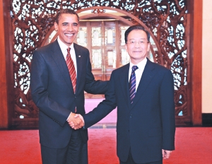 11月18日,國(guó)務(wù)院總理溫家寶在北京釣魚(yú)臺(tái)國(guó)賓館會(huì)見(jiàn)美國(guó)總統(tǒng)奧巴馬。 國(guó)務(wù)院總理溫家寶18日在釣魚(yú)臺(tái)國(guó)賓館會(huì)見(jiàn)美國(guó)總統(tǒng)奧巴馬。 溫家寶首先對(duì)奧巴馬來(lái)訪表示歡迎,并認(rèn)為這次訪問(wèn)的成果具有深遠(yuǎn)意義。 溫家寶說(shuō),中美都是世界上有重要影響的國(guó)家。中美關(guān)系發(fā)展歷程證明一個(gè)道理:“和則兩利,斗則俱傷”;“互信則進(jìn),猜忌則退”。合作比遏制好,對(duì)話比對(duì)抗好,伙伴比對(duì)手好。我希望通過(guò)總統(tǒng)先生的訪問(wèn),中美關(guān)系進(jìn)入全面合作的新階段。 溫家寶強(qiáng)調(diào),中國(guó)高度重視中美關(guān)系。一個(gè)穩(wěn)定、合作、向上的中美關(guān)系不僅有利于兩國(guó),也有利于世界。我們不贊成有關(guān)“兩國(guó)集團(tuán)”提法的主要原因是:第一,中國(guó)是一個(gè)人口眾多的發(fā)展中國(guó)家,要建成一個(gè)現(xiàn)代化國(guó)家還有很長(zhǎng)的路要走,對(duì)此我們始終保持清醒;第二,中國(guó)奉行獨(dú)立自主的和平外交政策,不與任何國(guó)家或國(guó)家集團(tuán)結(jié)盟;第三,中國(guó)主張世界上的事情應(yīng)該由各國(guó)共同決定,不能由一兩個(gè)國(guó)家說(shuō)了算。同時(shí)我們認(rèn)為,中美合作可以發(fā)揮獨(dú)特作用,推動(dòng)建立國(guó)際政治、經(jīng)濟(jì)新秩序,促進(jìn)世界和平、穩(wěn)定和繁榮。 溫家寶指出,中美建交30年來(lái),雙邊貿(mào)易額大幅度增長(zhǎng),這符合兩國(guó)和兩國(guó)人民的根本利益。中國(guó)不追求貿(mào)易順差,希望美國(guó)改變對(duì)華出口管制政策,提高高技術(shù)產(chǎn)品出口比重。同時(shí)兩國(guó)應(yīng)加強(qiáng)在能源、環(huán)保、高科技等領(lǐng)域的相互投資與合作,促進(jìn)雙邊貿(mào)易趨于平衡。世界貿(mào)易和投資的活躍,有利于應(yīng)對(duì)國(guó)際金融危機(jī),加快世界經(jīng)濟(jì)復(fù)蘇。中美要共同反對(duì)貿(mào)易和投資保護(hù)主義。 奧巴馬說(shuō),美中關(guān)系具有全球意義。在促進(jìn)世界經(jīng)濟(jì)復(fù)蘇、應(yīng)對(duì)氣候變化、維護(hù)亞太地區(qū)和世界安全與穩(wěn)定等重大問(wèn)題上,美中合作至關(guān)重要。雙方要摒棄互不信任和誤解,加強(qiáng)對(duì)話與合作,推動(dòng)美中關(guān)系不斷向前邁進(jìn)。 奧巴馬表示,美方贊賞和支持中國(guó)政府發(fā)展經(jīng)濟(jì)、消除貧困所作的努力。中國(guó)的發(fā)展對(duì)世界有利。 奧巴馬表示,美中互為重要的貿(mào)易伙伴,這給兩國(guó)帶來(lái)了巨大的利益。搞貿(mào)易保護(hù)主義對(duì)雙方都不利。美方致力于促進(jìn)美中經(jīng)貿(mào)關(guān)系平穩(wěn)發(fā)展,實(shí)現(xiàn)互利共贏。中國(guó)調(diào)整經(jīng)濟(jì)結(jié)構(gòu),擴(kuò)大內(nèi)需,保護(hù)知識(shí)產(chǎn)權(quán),改革人民幣匯率形成機(jī)制,有利于解決兩國(guó)貿(mào)易不平衡問(wèn)題,美方對(duì)此表示贊賞,并愿妥善處理雙邊貿(mào)易摩擦,避免損害兩國(guó)關(guān)系。美方認(rèn)識(shí)到中方在美對(duì)華出口管制等問(wèn)題上的關(guān)切,愿采取措施,增加對(duì)華高技術(shù)產(chǎn)品出口。 雙方還就氣候變化、朝鮮半島局勢(shì)、中東問(wèn)題、多哈回合貿(mào)易談判等交換了看法。 國(guó)務(wù)委員戴秉國(guó)、外交部部長(zhǎng)楊潔篪、國(guó)家發(fā)展和改革委員會(huì)主任張平、商務(wù)部部長(zhǎng)陳德銘、中國(guó)駐美國(guó)大使周文重等參加會(huì)見(jiàn)。