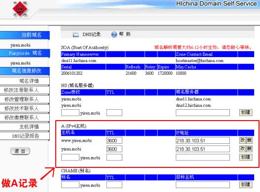 登錄后,進(jìn)入如下頁面,用戶就可以做域名管理了: |