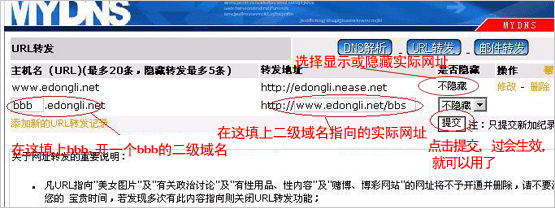 二、域名CNAME記錄、URL轉(zhuǎn)發(fā)做法,如下圖: |