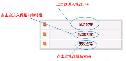 登陸后點(diǎn)擊域名管理的 MyDNS功能 ,如下圖: |
