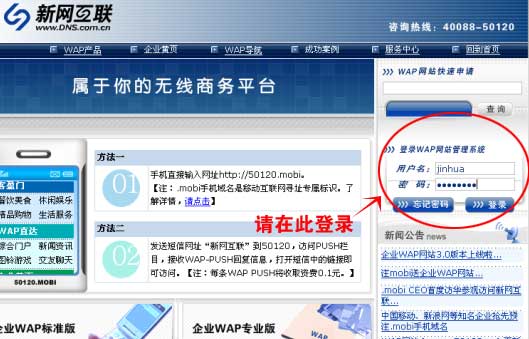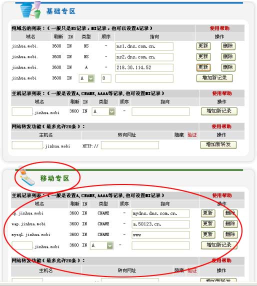 做好解析后,向我司相關(guān)工作人員索要用戶名和密碼,登陸 http://www.50123.cn/ 做mobi域名管理,如下圖: |