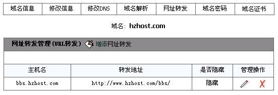 這樣,隱藏轉(zhuǎn)發(fā)記錄就做好了,如下圖所示,您就可以用bbs.hzhost.com來訪問www.hzhost.com/bbs/了。