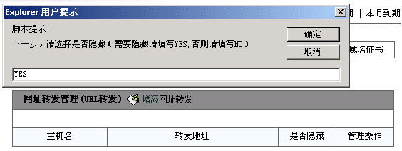 7>按確定后,請輸入"YES"表示隱藏轉(zhuǎn)發(fā),輸入"NO"則表示非隱藏轉(zhuǎn)發(fā).按確定就完成了所有操作。