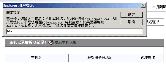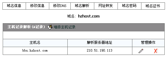 2>我們把bbs.hzhost.com解析到轉(zhuǎn)發(fā)IP:210.51.190.113上。點擊"增添主機(jī)記錄",然后在彈出的框內(nèi)輸入"bbs",注意,不能輸入"bbs.hzhost.com"。如下圖所示: