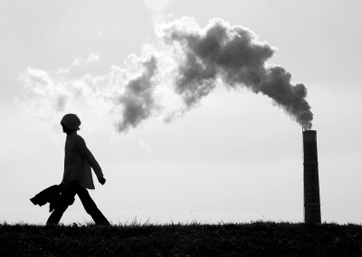 2009年12月28日,在日本東京的一個(gè)工業(yè)區(qū),一名當(dāng)?shù)鼐用駨囊患夜S的煙囪旁走過。