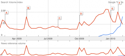 Google Trends -- 紅線: kindle; 藍(lán)線: chatroulette
