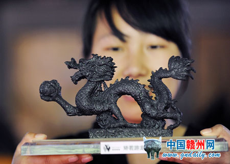 近日,在有鎢都之美譽(yù)的大余縣城,一女營(yíng)業(yè)員向游人展示新近研發(fā)出的鎢制禮品“十二生肖”。據(jù)了解,這種用鎢礦石做成十二生肖等造型別致的禮品,一上市就贏(yíng)得了顧客的青睞。