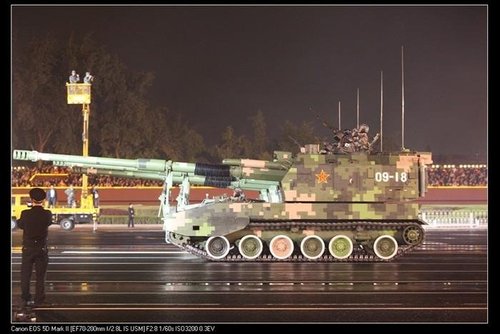準備參加國慶閱兵的PLZ-05自行榴彈炮身披數(shù)碼迷彩