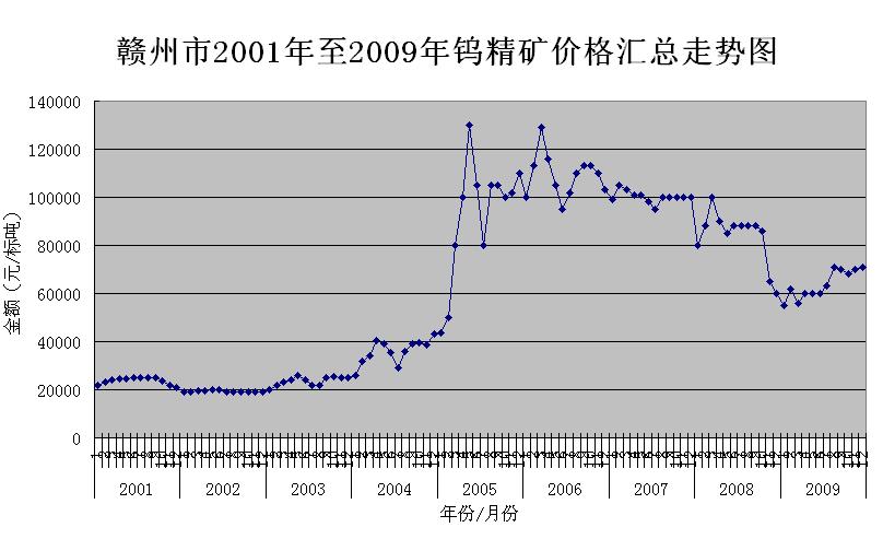 2001年至2009年江西贛州鎢精礦價(jià)格走勢(shì)圖