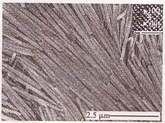 Gu Zhanjun等人以白鎢酸(W03.xH20)為前軀體,用Li2SO4和乙二酸分別作結(jié)構(gòu)導向劑和分散劑,在反應釜內(nèi)180℃下保溫24.0 h進行反應,然后過濾、洗滌和干燥制備出了直徑為5-15 nm、長度大于10μm的WO3納米棒,該WO3納米棒是單晶的,是沿{001}方向生長(見圖2)。