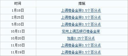 穩(wěn)健貨幣政策內(nèi)涵開始發(fā)生變化,適當(dāng)緊縮銀根,多次上調(diào)存款準(zhǔn)備金率和利率。