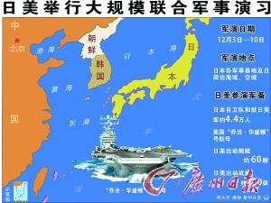 日本和美國(guó)軍隊(duì)3日起在包括沖繩東部海域在內(nèi)的日本周邊海域和空域展開為期8天的聯(lián)合軍事演習(xí),規(guī)模大于以往歷次日美聯(lián)合軍演。韓國(guó)軍隊(duì)首次派遣觀察員觀摩。