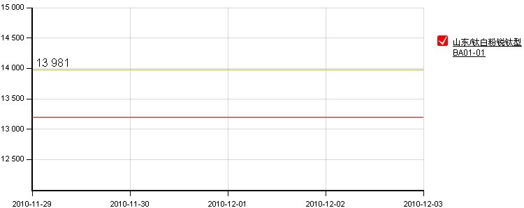 本周鈦白粉市場(chǎng)報(bào)價(jià)平穩(wěn),國(guó)內(nèi)市場(chǎng)依然供應(yīng)緊張,價(jià)格趨漲。以下是山東地區(qū)本周鈦白粉價(jià)格的走勢(shì)圖: