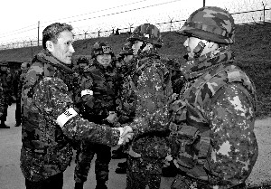 韓國新任國防部長金寬鎮(zhèn)4日正式就職,隨后第一件事就是視察延坪島,并且發(fā)表對(duì)朝強(qiáng)硬講話。金寬鎮(zhèn)宣稱,如果朝鮮再次發(fā)動(dòng)對(duì)韓國的軍事襲擊,韓 國將強(qiáng)硬回?fù),直到其投降?/SPAN>5日,金寬鎮(zhèn)首次以國防部長身份前往朝韓之間的非軍事區(qū)視察,了解作戰(zhàn)準(zhǔn)備情況,并與士兵們一起用餐。