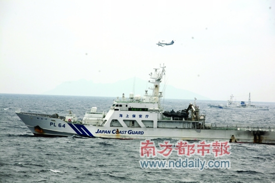 出現(xiàn)在中國(guó)護(hù)漁編隊(duì)附近的日本海上保安廳船只和飛機(jī)。南都特派記者周皓