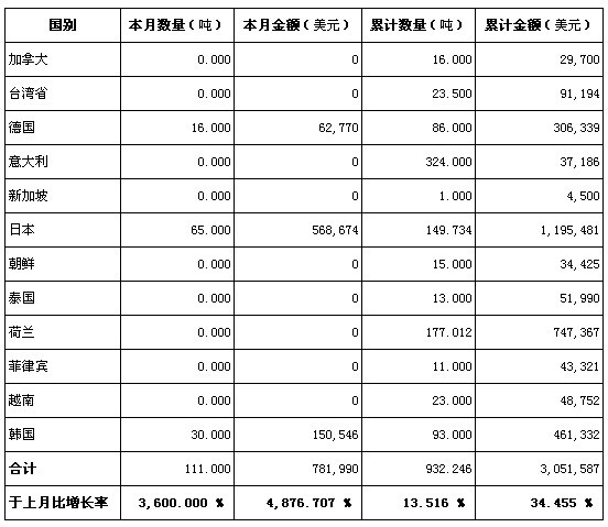 2010年11月份各國海關出口鈦鐵及硅鈦鐵分國統(tǒng)計