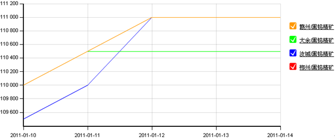 本周國內(nèi)主要地區(qū)黑鎢精礦日均價格走勢圖如下圖所示:
