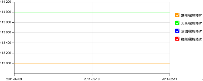 本周國內(nèi)主要地區(qū)黑鎢精礦日均價格走勢圖如下圖所示: