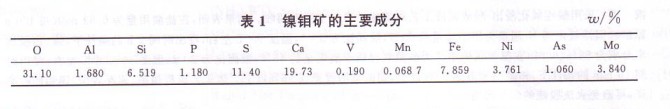 實驗用鎳鉬礦來自湖南張家界,其主要成分分如表 l 所示。
