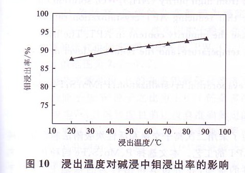 對酸渣的堿浸不需要維持較高的浸出溫度也可將其中90 9《以上的鉬浸出,從減少能耗的角度考慮,甚至可以在室溫條件下進行堿浸。浸出劑配制 [時,因固體氫氧化鈉溶于水而放熱,其溶液溫度為40~50℃,可直接用于酸渣的浸出。