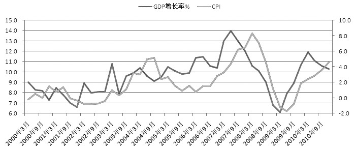 那么,通脹何時結(jié)束,國內(nèi)CPI何時見頂?我們分析發(fā)現(xiàn),GDP增長率往往會較CPI先反應(yīng),特別是2007年6月GDP增長率見頂后,2008年3月 份CPI見頂。去年3月份GDP結(jié)束了連續(xù)創(chuàng)新高的局面,如果3月份是“頂”的話,那么意味著CPI極有可能在今年見頂,根據(jù)我們的分析,CPI可能在今 年二季度末見頂。