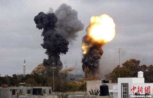 3月29日,利比亞首都的黎波里,利比亞領(lǐng)導(dǎo)人卡扎菲住所附近發(fā)生多起爆炸。