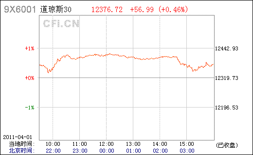 經(jīng)濟(jì)數(shù)據(jù)利好 美股二季度開(kāi)門紅 北京時(shí)間4月2日凌晨消息,受利好經(jīng)濟(jì)數(shù)據(jù)推動(dòng),周五美國(guó)股市收高,美股迎來(lái)第二季度開(kāi)門紅。數(shù)據(jù)顯示美國(guó)經(jīng)濟(jì)創(chuàng)造的就業(yè)崗位持續(xù)增加、失業(yè)率降至兩年新低,令市場(chǎng)情緒樂(lè)觀,道指盤中創(chuàng)下2011年新高。 美東時(shí)間4月1日16:00(北京時(shí)間4月2日04:00),道瓊斯工業(yè)平均指數(shù)上漲56.99點(diǎn),收于12,376.72點(diǎn),漲幅0.46%;納斯 達(dá)克綜合指數(shù)上漲8.53點(diǎn),收于2,789.60點(diǎn),漲幅0.31%;標(biāo)準(zhǔn)普爾500指數(shù)上漲6.58點(diǎn),收于1,332.41點(diǎn),漲幅0.50%。 經(jīng)濟(jì)數(shù)據(jù)面,美國(guó)勞工部宣布美國(guó)3月份非農(nóng)就業(yè)人數(shù)增加21.6萬(wàn)人,失業(yè)率降至8.8%。美國(guó)供應(yīng)管理協(xié)會(huì)(ISM)3月制造業(yè)指數(shù)(1402.951,11.11,0.80%)稍高于經(jīng)濟(jì)學(xué)家平均預(yù)期。 費(fèi)城聯(lián)儲(chǔ)主席Charles Plosser周五早間表示,美國(guó)央行可能很快就會(huì)被迫采取緊縮政策,并且政策會(huì)很激進(jìn)。 但紐約聯(lián)儲(chǔ)主席William Dudley警告稱,不要過(guò)早實(shí)行緊縮性貨幣政策。他表示,美國(guó)經(jīng)濟(jì)復(fù)蘇狀況仍然脆弱,不要對(duì)美國(guó)經(jīng)濟(jì)增長(zhǎng)前景太過(guò)樂(lè)觀。 美國(guó)國(guó)債價(jià)格下跌,10年期國(guó)債收益率升至3.49%。美元兌大多數(shù)主要貨幣匯率走高,兌日元匯率上漲至84.28。歐元兌美元匯率升至1.4175。 紐約商業(yè)交易所黃金期貨價(jià)格下跌11美元,跌幅0.9%,收于每盎司1428.90美元。周四金價(jià)收于每盎司1439.90美元,為歷史最高收盤價(jià)。原油期貨價(jià)格上漲1.22美元,漲幅1.1%,收于每桶107.94美元,為2010年9月25日以來(lái)最高收盤價(jià)。 周五歐洲股市大幅收高。