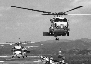 4月1日,宮城縣氣仙沼市,一架參加搜救行動的日本自衛(wèi)隊直升機起飛。 |