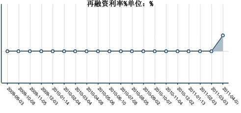 1.中國人民銀行決定,自2011年4月6日起上調金融機構人民幣存貸款基準利率。金融機構一年期存貸款基準利率分別上調0.25個百分點,其他各檔次存貸款基準利率及個人住房公積金貸款利率相應調整