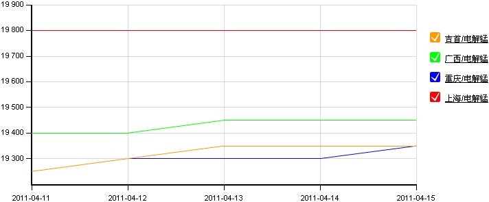 圖1:全國(guó)主要地區(qū)電解錳價(jià)格走勢(shì)圖(2011.4.11-2011.4.15)