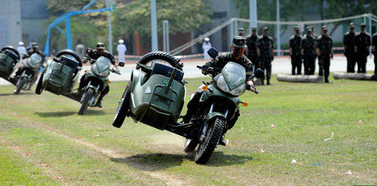 4月26日,駐港部隊(duì)特種兵在表演摩托車特技駕駛