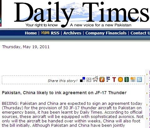 巴媒稱,根據(jù)官方的消息,這些戰(zhàn)機將裝備先進的航空電子設(shè)備。中國不僅會在數(shù)周內(nèi)交付這些戰(zhàn)機,還會先幫巴基斯坦墊付資金。盡管中巴兩國聯(lián)合研 制了該多功能戰(zhàn)機,由于美國在阿伯塔巴德(Abbottabad)實施擊斃“基地”組織頭號恐怖分子本-拉登的行動,巴基斯坦的防務(wù)能力受到嚴重質(zhì)疑。