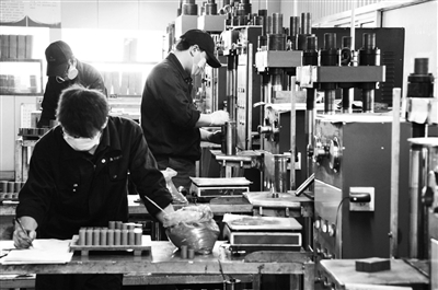 江西贛州中瑞材料科技有限公司有色金屬加工車間,工人在生產(chǎn)線上緊張忙碌著