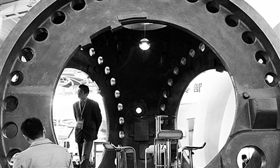 觀眾在南京舉行的中國(guó)鑄造零部件展覽會(huì)上參觀風(fēng)電輪轂
