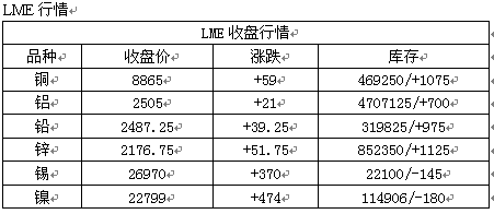 期貨市場:美元指數(shù)走低及經(jīng)濟(jì)數(shù)據(jù)利好 下,昨基本金屬震蕩走高,受智利銅礦減產(chǎn)消息影響倫銅昨夜震蕩走高,但上方9000美元附近壓力明顯,今料滬銅小幅高開,前期多單可少量持有。滬鋅有繼續(xù) 反彈的可能,料今高開百元左右,多單繼續(xù)持有。滬鋁上行仍顯乏力,觀望。受環(huán)保壓力明顯,鉛下游蓄電池面臨整合壓力,滬鉛空單持有。