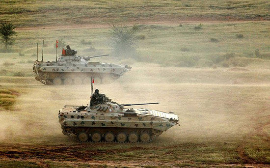 資料圖:印度BMP-2步兵戰(zhàn)車部隊(duì)參加實(shí)戰(zhàn)演習(xí)