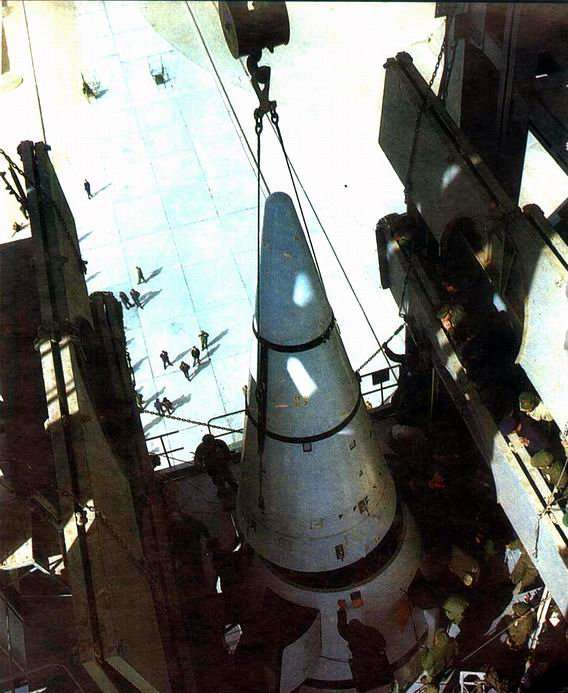 資料圖:解放軍二炮部隊(duì)東風(fēng)5洲際導(dǎo)彈吊裝模擬“核彈頭”。