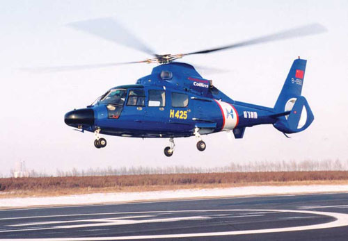 H425由直-9為基礎(chǔ)研制,是一種12座直升機(jī),最大飛行速度為315千米/小時(shí),航程達(dá)1000千米,載重量為兩噸。