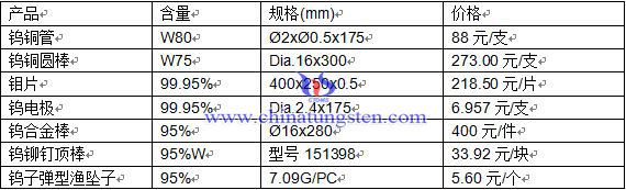 今日主要鎢制品市場(chǎng)平均價(jià)格: