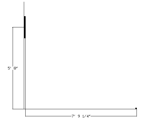 The throw line (also known as the oche, toe-line or hockey) should be about 3 feet wide. It may be made of tape, a store bought throw-line sticker, a piece of wood or metal. It should be placed exactly 7 foot 9 and 1/4 inches from the FACE of the board for a standard steel-tipped setup. For soft-tipped darts, the line should be 8 feet from the FACE of the board. (NOTE: Some British pubs use an 8 foot or 8 foot 6 inch measurement for steel tip darts.) To measure from the face of the board, have someone hold a plumb line from the bottom-front of the board to the floor. If you don't have a plumb line, you can use a piece of string with a pencil or dart tied to one end. Make sure the throw line is exactly perpendicular to the face of the board and centered with the board. This can be accomplished by measuring from the bullseye to each corner of the line. If you have a carpeted area where you are going to setup your dartboard, you can use a strip of wood or metal with the "hook" side of a piece of Velcro attached to the back as your throw line. You can stick it to the carpet when in use and it won't move, then just rip it up when you're done. Proper Setup Of A Darting Area: