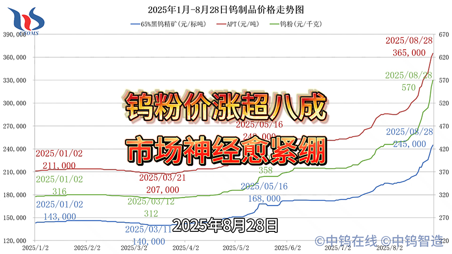 2025年1月-8月28日鎢制品價格走勢 作者: zhenghua 發(fā)布日期: 2025年8月29日 30 2025年1月-8月28日鎢制品價格走勢 如您對相關(guān)產(chǎn)品感興趣或想銷售您的產(chǎn)品,請聯(lián)系我們: Please leave this field empty.