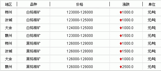 3月2日 國內(nèi)主要地區(qū)鎢精礦市場最新價(jià)格參考