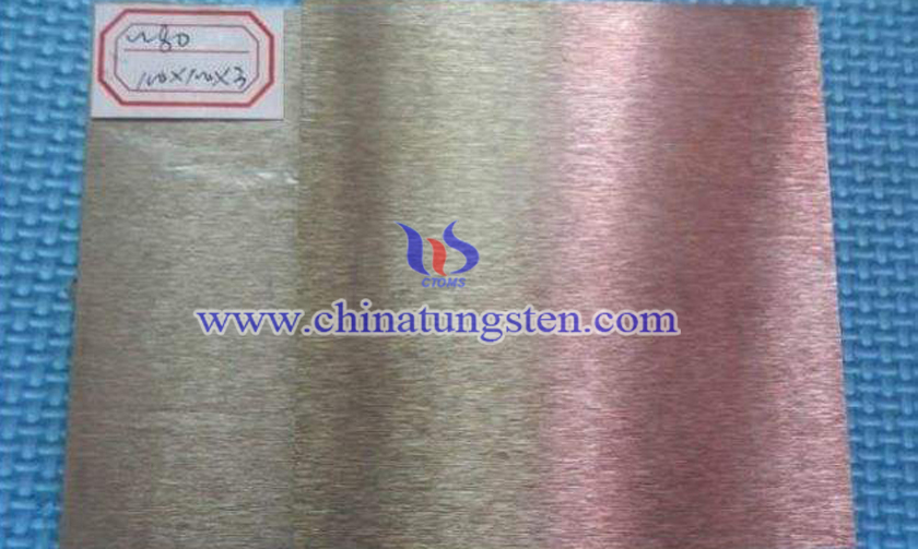 The thickness of 3×100×100mm tungsten copper plate is 2mm, the width and length are 100mm. According to the content of tungsten and copper, the main proportion or grade of 3×100×100mm tungsten-copper alloy plate includes W50, W55 and W60, W65, W70, W75, W80, W85, W90, etc. Different proportions of tungsten-copper alloy sheets have different uses.