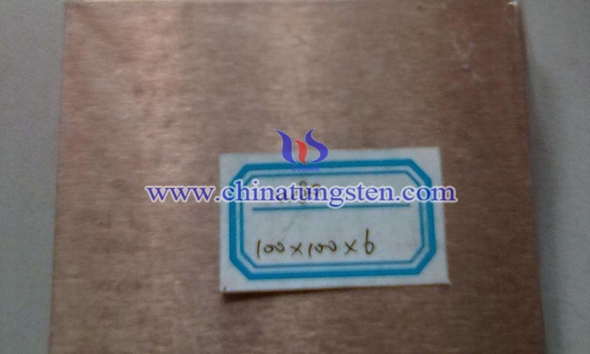6×100×100mm tungsten copper plate is made of fine high-purity tungsten powder and high-purity tungsten copper powder. It is made by static pressure forming, high-temperature sintering and copper infiltration. It has good electrical and thermal conductivity and arc ablation resistance.