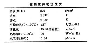 [鈷的主要物理性質(zhì)] 含鈷高溫合金在 900~1000下仍有很高的強(qiáng)度和抗蠕變性能,多用于制作噴氣發(fā)動(dòng)機(jī)的耐高溫部件。鈷能提高鐵基、鋁鎳基和稀土金屬合金的磁飽和強(qiáng)度和居里點(diǎn),使其具有高矯頑力,是電氣工業(yè)中的優(yōu)良磁性材料。鈷是硬質(zhì)合金的粘合劑。金屬部件用鈷合金涂層和表面硬化后,其機(jī)械性能顯著提高。鈷的氧化物是陶瓷制品的脫色劑和顏料;搪瓷中的含鈷釉料可使搪瓷同鋼更好地粘結(jié)在一起。鈷的有機(jī)化合物在油漆中作催干劑。鈷還在化工生產(chǎn)中用于碳?xì)浠衔锏乃、脫硫、氧化、還原等方面 Co是γ射線源,用于物理、化學(xué)、生物研究和醫(yī)療部門。
