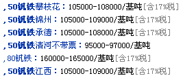 今日國內(nèi)各地區(qū)釩鐵價格具體行情如下: